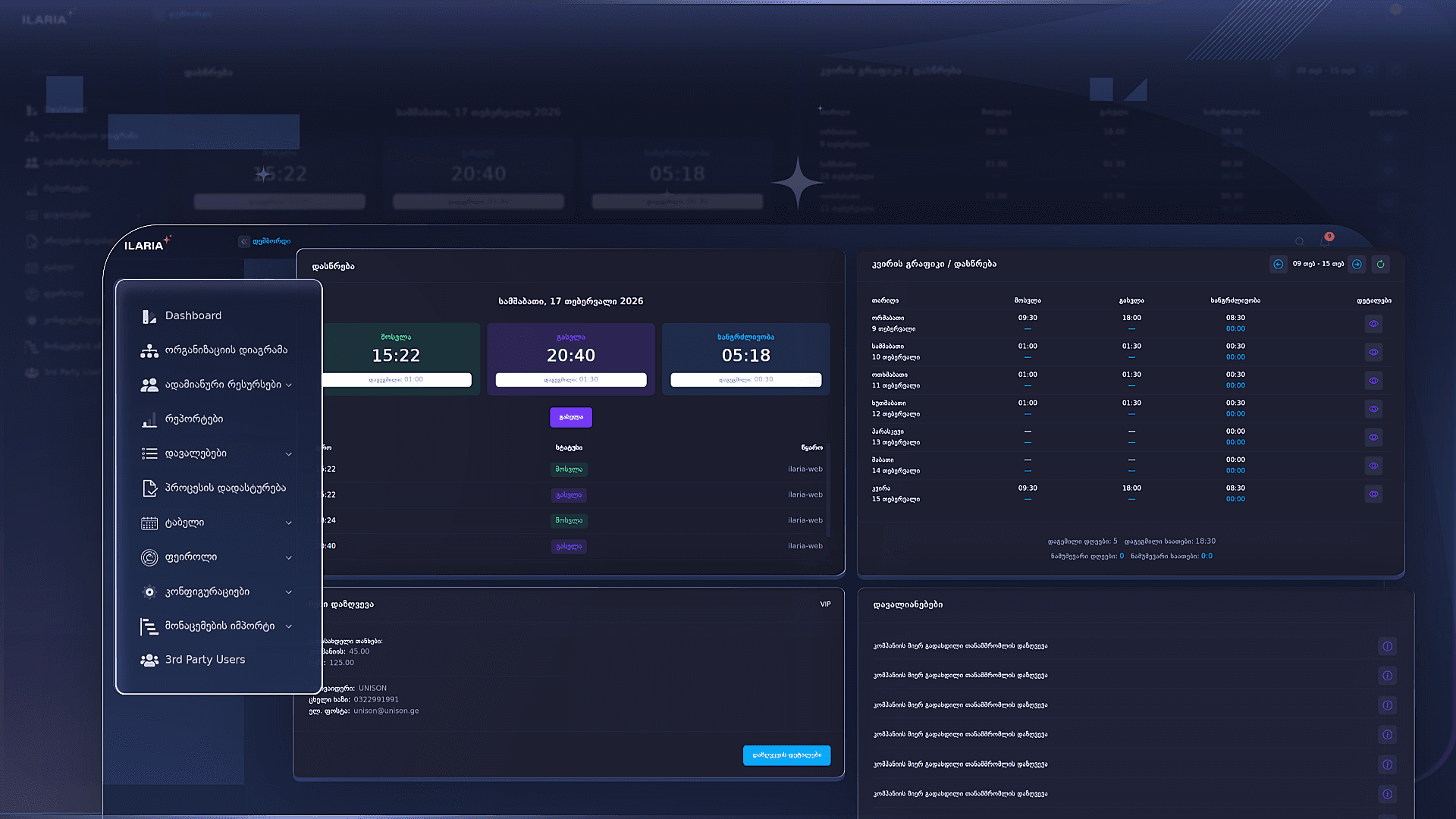 სამუშაო გრაფიკებისა და დასწრების ავტომატური მართვა